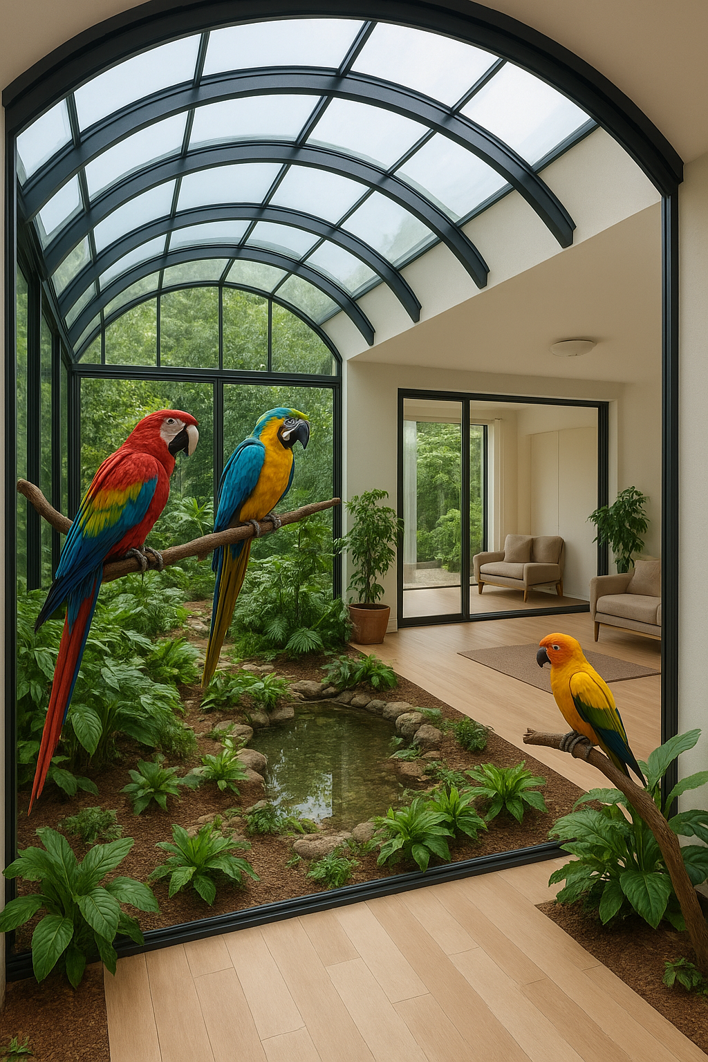 We create custom aviaries that enhance your outdoor space with beauty and life. Designed to fit your area and meet your birds’ needs, our aviaries are durable and blend seamlessly into gardens